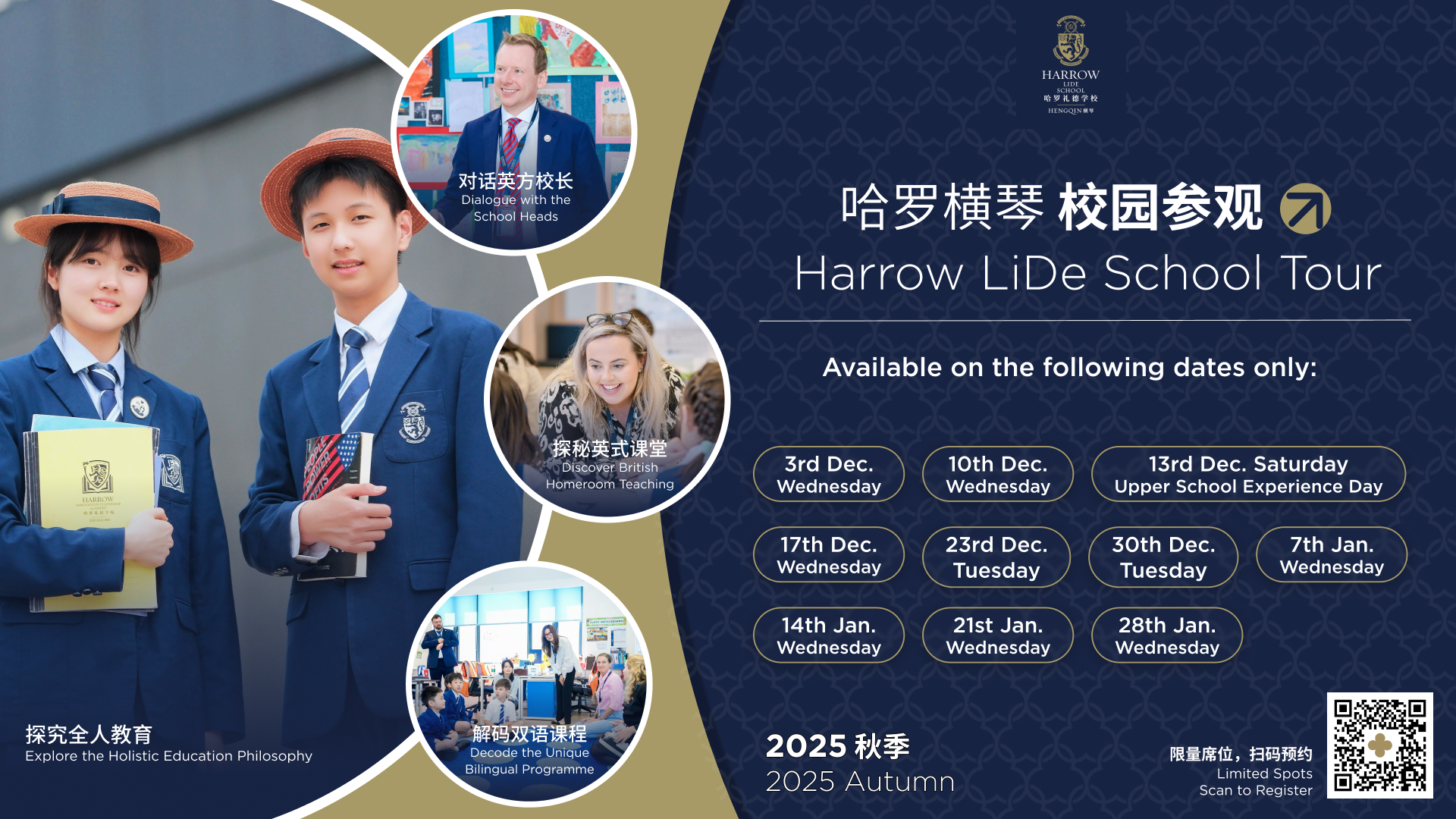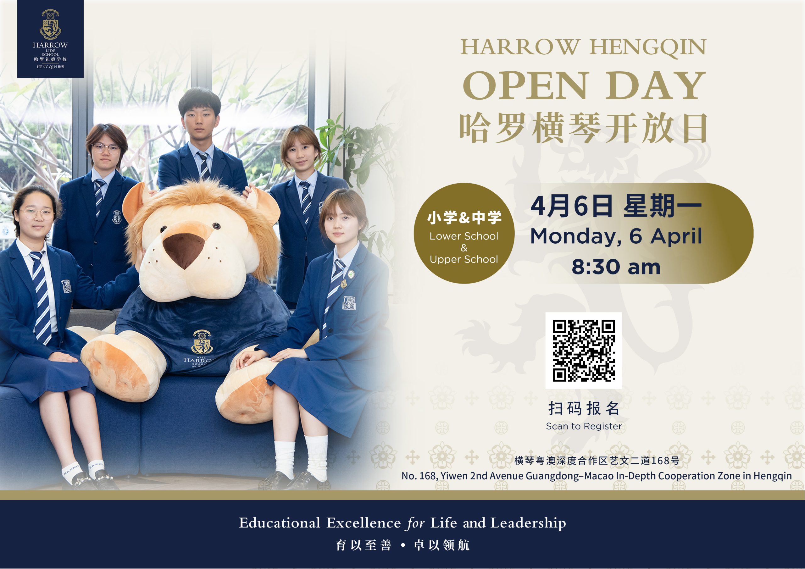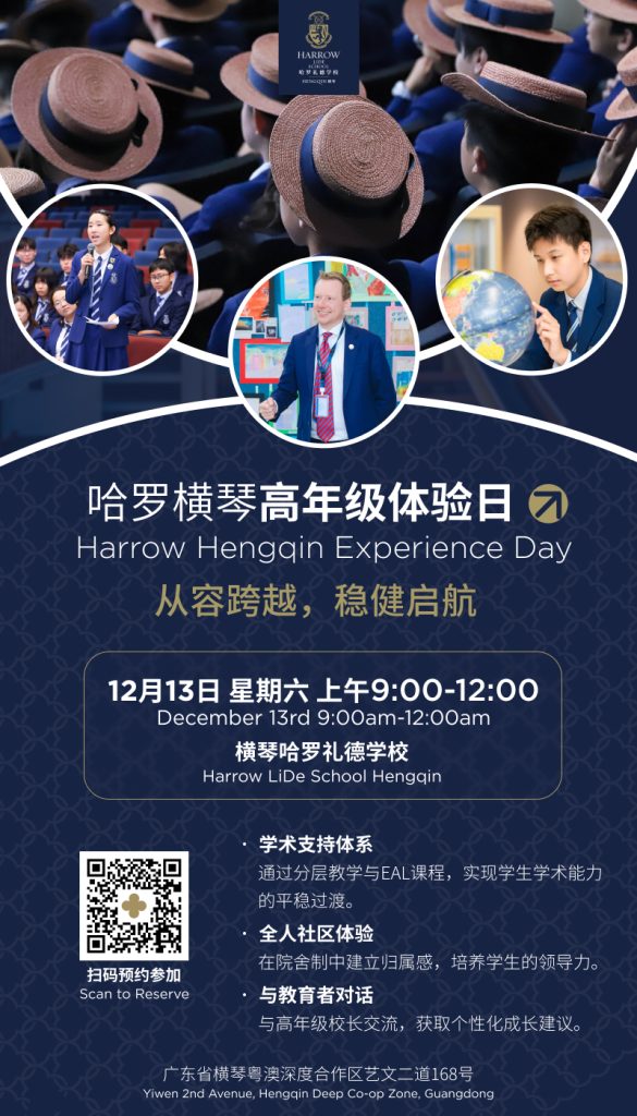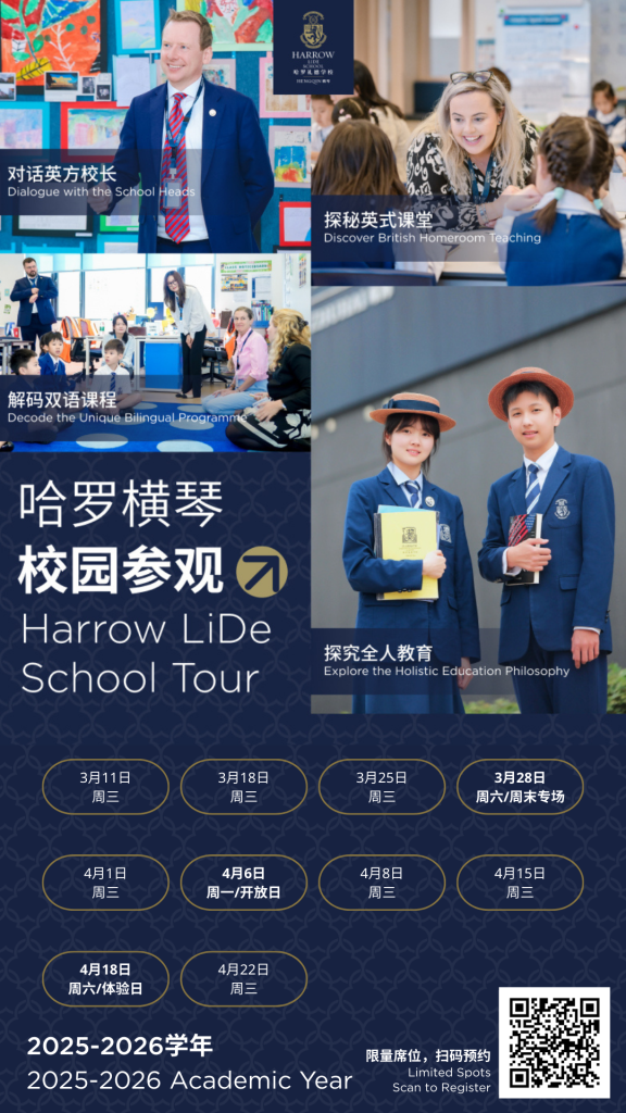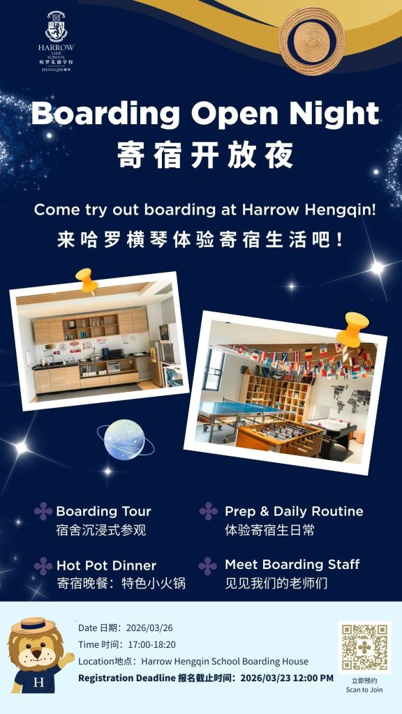 Harrow LiDe School Hengqin (usually referred to as ‘Harrow Hengqin’) is located in the Guangdong-Macao Intensive Cooperation Zone on the beautiful island of Hengqin. It is a day and boarding school dedicated to providing international bilingual education for in all grades K-12. As the only Harrow bilingual school in the Greater Bay Area, it offers a top-tier Harrow LiDe education system designed largely for Chinese and overseas Chinese students, establishing a new benchmark in bilingual education in the Greater Bay Area. The international spirit of the school is boosted by the diverse student body: over 30% of students do not speak Mandarin as their first language, originating from Hong Kong, Macau or from outside China. Intensive teaching in the English language and immersion in school activities, led in English, leads to bilingualism. Those who do not speak Mandarin fluently are similarly coached in Chinese as a second language to become bilingual. Many of our students are becoming trilingual.