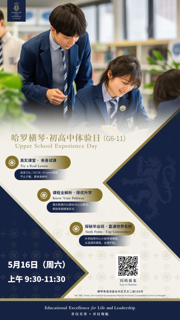 Harrow LiDe School Hengqin (usually referred to as ‘Harrow Hengqin’) is located in the Guangdong-Macao Intensive Cooperation Zone on the beautiful island of Hengqin. It is a day and boarding school dedicated to providing international bilingual education across grades K-12. As the only Harrow bilingual school in the Greater Bay Area, it offers a top-tier Harrow LiDe education system designed for Chinese and overseas Chinese students, as well as an international student programme, establishing a new benchmark in bilingual education in the Greater Bay Area. The international spirit of the school is boosted by the diverse student body: over 30% of students do not speak Mandarin as their first language, originating from Hong Kong, Macau or from outside China, including the UK, Thailand, Australia, Canada, USA and SIngapore. Intensive teaching in the English language and immersion in school activities, led in English, leads to bilingualism. Those who do not speak Mandarin fluently are similarly coached in Chinese as a second language to become bilingual. Many of our students are becoming trilingual.