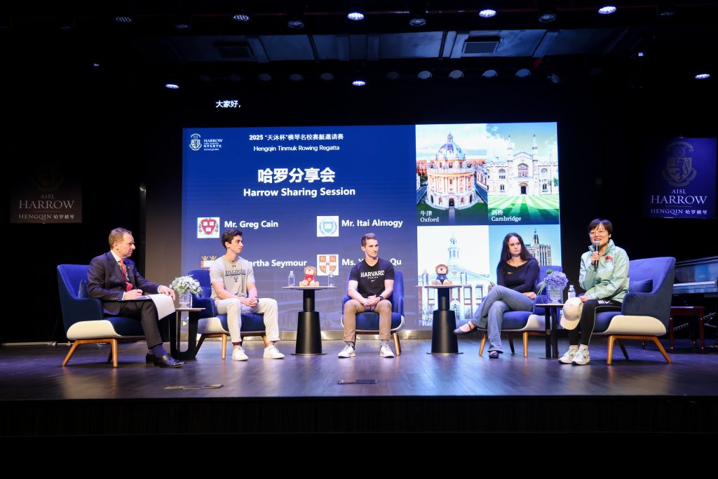 On the afternoon of 28 November, rowers from four universities—Oxford, Cambridge, Harvard and Yale—came together at Harrow Hengqin for a joint sharing session.