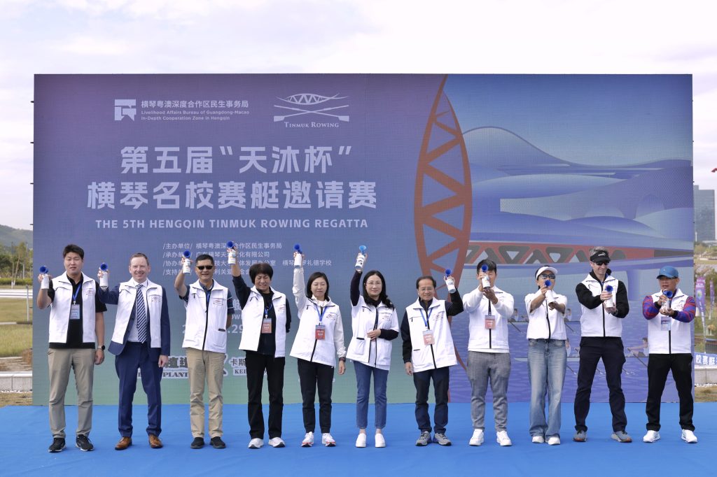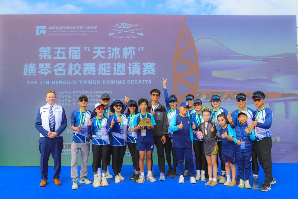 The sharing sessions were only the beginning. On 29 November, the Fifth Hengqin Tinmuk Rowing Regatta—hosted by the Livelihood Affairs Bureau of the Guangdong–Macao In-Depth Cooperation Zone in Hengqin and organised by Guangdong Hengqin Tinmuk Culture Co., Ltd.—took place at the Rowing Park beside our school. Teams from leading universities in the UK, the US, France, Singapore, Malaysia and Australia, alongside crews from across China, gathered on the Tinmuk River for two exciting days of racing.