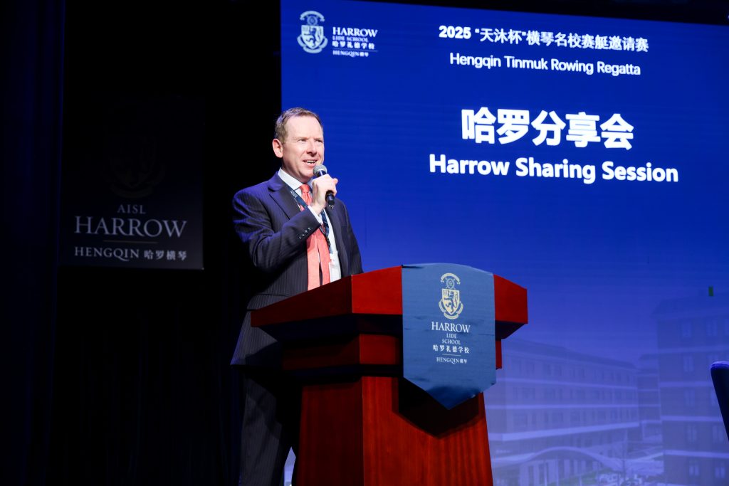 哈罗横琴校长Luke Bartlett先生在随后的致辞中,提到学校周围风景优美,天沐河有良好的水域条件,是世界一流的赛艇赛道,距离学校不足 400 米。这里拥有卓越的赛艇设施,希望这个区域能发展为亚洲顶尖的赛艇中心。他对这群拥有多元文化背景的精英学子表示欢迎,希望哈佛、剑桥等精英大学的赛艇选手与哈罗横琴的学生进行分享交流,能让学生受益。