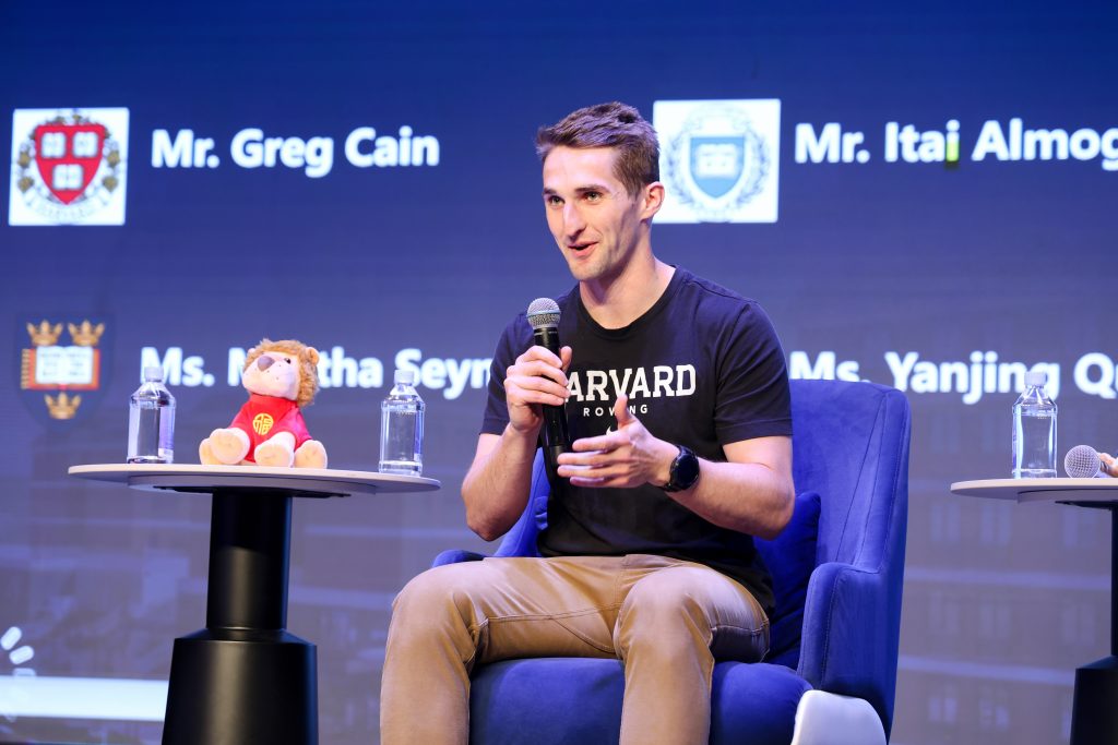 分享会的核心环节由四位赛艇队长主导,他们带来的不仅是赛艇的故事,更是关于成长与平衡学业和训练的深刻见解。耶鲁大学赛艇队队长Itai Almogy分享了他的感悟,赛艇教会他重要的一课是——付出与收获成正比。这不仅仅是一项个人运动,它更关乎整个团队的同步与信任,每一个人的力量都至关重要。